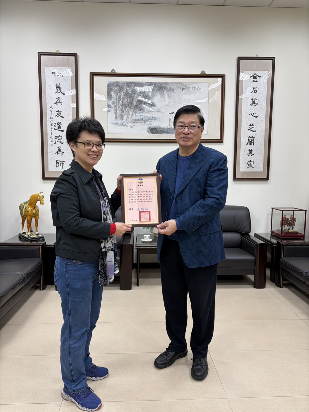 王老師20年來穩定開設核心課程,提升系上的整體教學品質,並融入實務案例與前沿議題,豐富學生視野,並以身作則展現學術熱忱,成為師生成就典範。系上吳斯茜老師今日代表盧偉斯主任特頒授感謝狀,以表彰老師對系上之貢獻,謝謝老師!